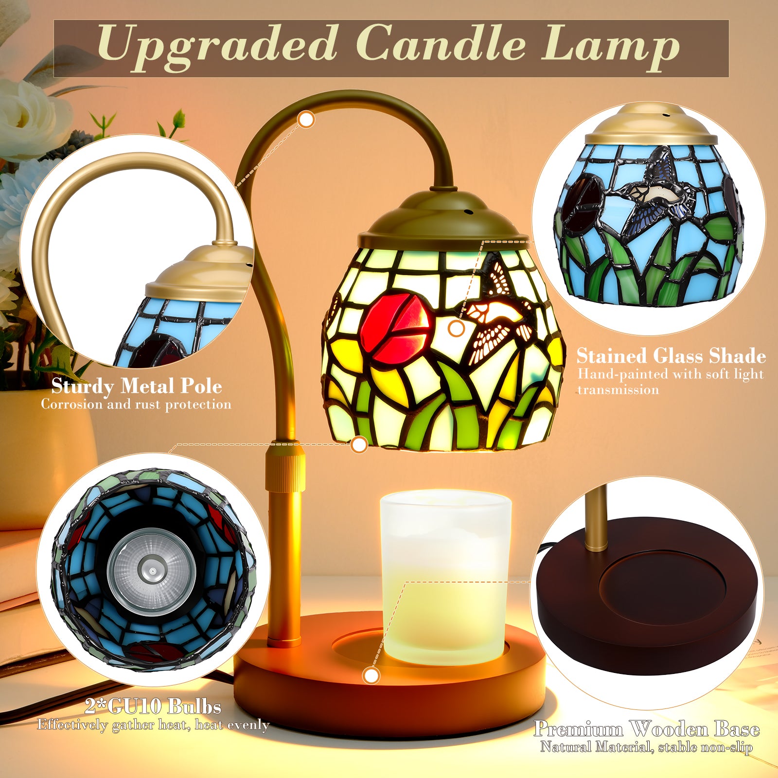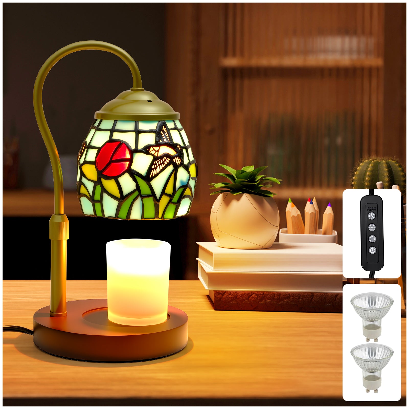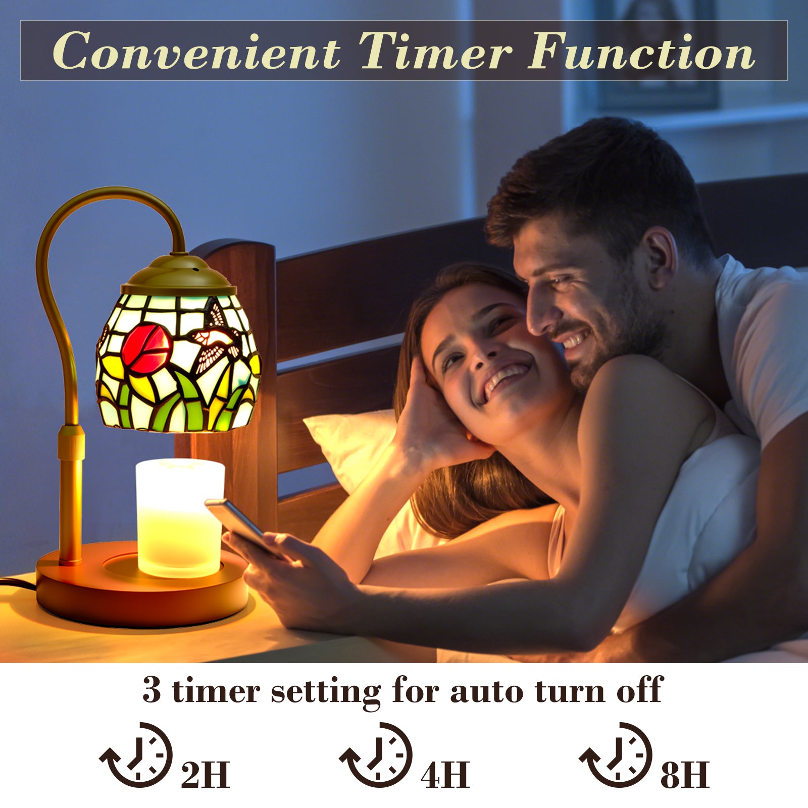 XIFEINIU Candle Warmer Lamp with Timer Dimmer, Adjustable Height Tiffany Style Stained Glass Lamp Candle Warmer with 2 Bulbs,Mothers Day Birthday Gifts for Women New Home Bedroom Decor for Jar Candles