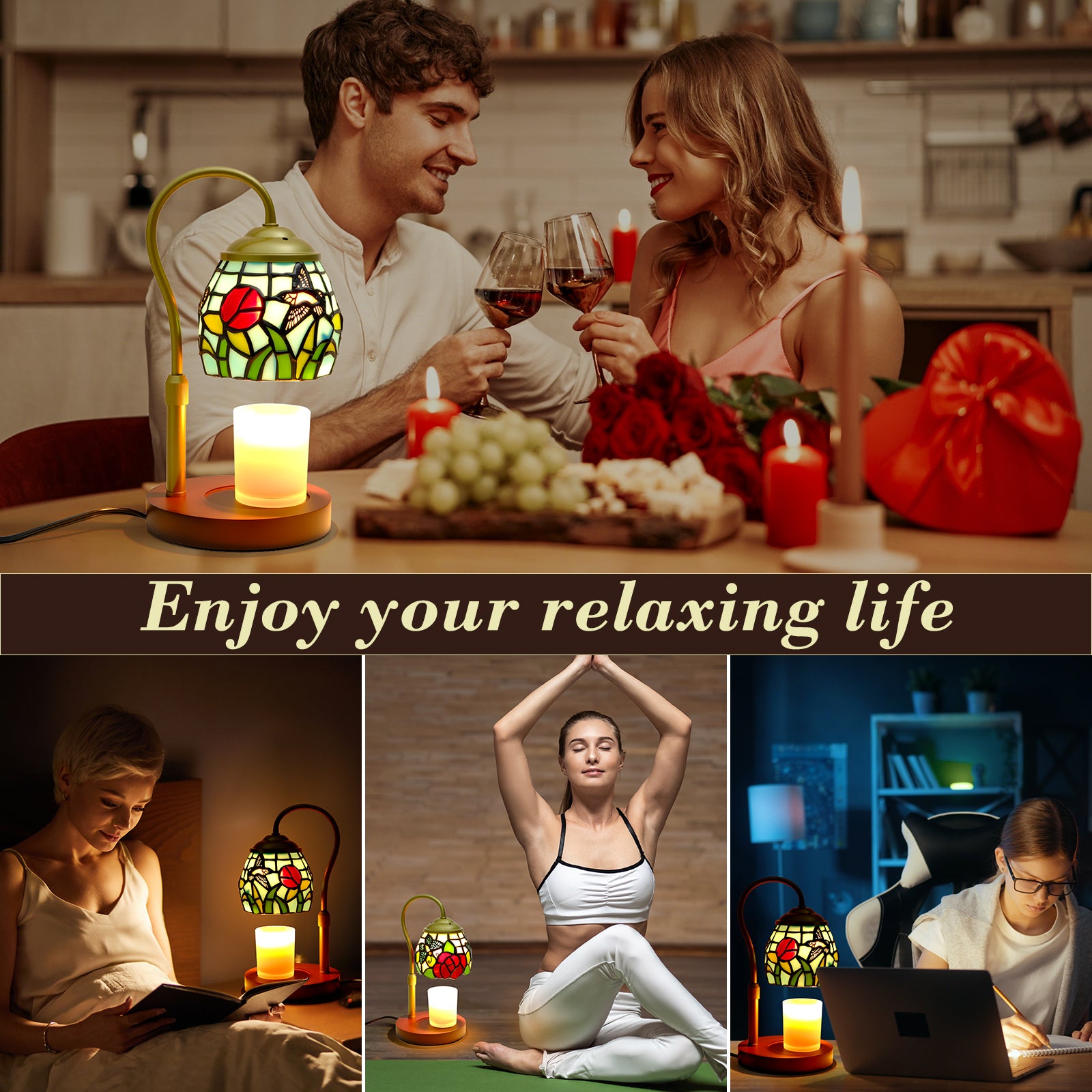 Fragrance Lamp for Most Types of Candles: It is 4 inches from the lampshade to the base and is compatible with most candles, such as jar candles. The wooden base of this modern candle warmer is equipped with non-slip pads to ensure stability and safety when you use this flower candle warmer; this vintage stained glass lamp is perfect as a beautiful home decor in your bedroom, living room, study, office, and yoga room